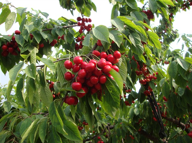 櫻桃栽培中,園地與品種的選擇必須考慮到櫻桃的生長特性,櫻桃樹根系相對不發(fā)達,根系分布較淺,開花早,易受霜害,具有喜肥、喜光的特性,在園地建設(shè)中盡量選擇土壤肥沃、土層深厚、地下水位低、有水澆條件、排水良好的丘陵地區(qū)。櫻桃栽培園地的土質(zhì)應(yīng)以中性、偏酸性的砂壤土、壤土為主,要求地勢盡量開闊,光照條件較為良好,空氣流通順暢。櫻桃屬異花授粉品種,自花授粉不能結(jié)實,或結(jié)實能力很差。在成片規(guī)范化栽培園中,株行距3~4米×4~5米,授粉品種按不少于1/4的比例配置。櫻桃采摘困難,不易貯藏,種植要選擇交通方便的地點。目前,在國內(nèi)栽培的櫻桃以早熟品種為主,常見的主要有:早大果、紅燈、美早、意大利早紅等,中晚熟品種則主要有:佐滕錦、先鋒、那翁、艷陽、雷尼等。昆明地區(qū)主推的品種有大果型的緋紅、早熟的秦林,中晚熟的先鋒。在櫻桃栽培品種的選擇中,應(yīng)遵循早結(jié)果、味甜少酸、大果、豐產(chǎn)、耐低溫,宜運輸,鮮食加工兼用、抗病性強等基本原則。